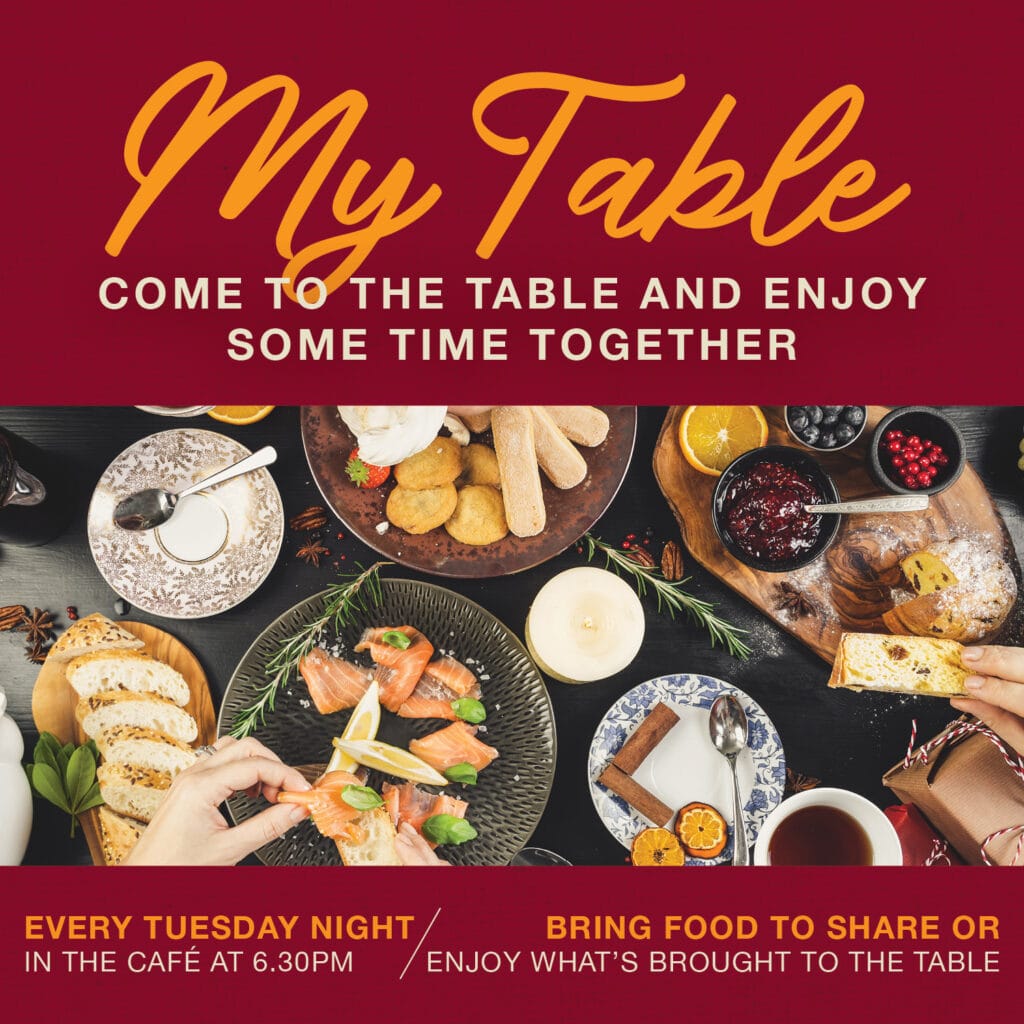 Come and share a meal together on Tuesday nights before the services. Every Tuesday you can bring along a plate to share, or alternatively just your own meal to sit and join your FOD family. The café area will be open from 6:30pm.